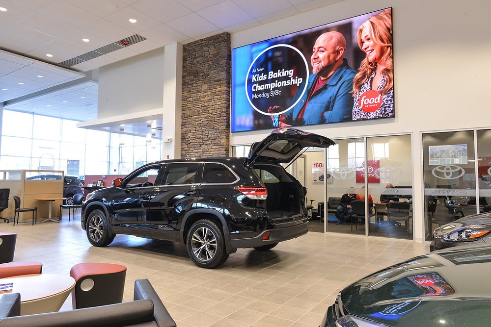 Goals: Johnston's Toyota dealership implemented a video wall in the lobby to display promotional information and entertain customers with select television programming. The end result is one which is guaranteed to engage visitors and showcase their professional services.
