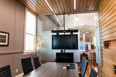 Integration: For this design firm’s conference room, our goal was to provide an audio-visual solution that matched the room’s clean, modern aesthetic while enhancing functionality for client presentations and team collaboration. The system was designed for ease of use, with integrated controls that allow users to manage video conferencing, audio, and screen sharing from a single, streamlined interface.